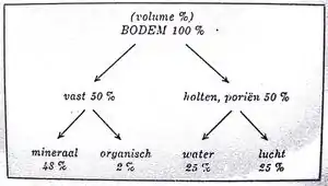 Soil = the upper loose part of the earth's crust upto a depth that is of importance for the plant. The thickness of the soil varies in Belgium between a few cm (high Belgium) to 1-2 m (low and middle Belgium). The section of the soil which is effectively used by the plant = 2m (for trees). Soil cultivation (tillage, fertilisation, weeding) needs to be done with the upper 25-30cm of the soil. Consolidaded soil is infertile.