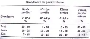 Saturation: All pores are filled with water, there remains no room for air. Maximum water content = saturation Field capacity: From a saturated soil layer, water is draint downwards. This takes up to the mement when there is a balance between the suctionforce of the medium and small pores and the force of gravity of the water. The large pores are filled with air, the small and medium are filled with water. The maximum watercontent - drainage water = field capacity Wilting point: The water present at field capacity is only partially absorbable by the plant (available water). Water in the finest pores is so strongly bound that it can not be absorbed by the plants (dead water). A soil with only non-absorbable water = wilting point. Field capacity - available water = wilting point