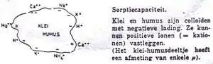 Large quantities of organic waste stream on top of and into the soil, such as plant remains (leaves, roots, stubbles, ...), animal waste (feces). In addition, the farmer also introduces tons of organic manure (stable manure, compost, ...) into the soil. After some time we retrieve nothing of these tons of organic substances, it vanished, consumed by the action of soil organisms (worms) and soil microorganisms (fungi and bacteria). These organisms feed on organic waste that they break it down into water, carbon dioxide (CO2) and nutrients. It leaves only a residual product that cannot decompose further; this is called humus. The conversion process is called the humufication process. 1000 kg of manure leaves only a few grams of humus. Humus is a constantly changing mixture of organic compounds in various stages of decomposition. We distinguish between non-stable or nutrition humus which serves as food for microorganisms (the primary conversion) and stable humus with can be little or no further converted (final conversion). The humification is done by breathing or aerobic bacteria. When the soil contains too little air (due to too much water), the breathing bacteria can not develop and the plant waste is little converted. Peat is then formed (therefore do not introduce stable manure too deep into the soil). Besides air, these bacteria also require nitrogen for their nutrition. Organic material that contains too little nitrogen require the adding of nitrogen for a quick and smooth conversion. The C/N ratio determines the quality of the humus. Organic material with a C/N ratio lower than 30/1 will humificate smoothly. For the introduction of green manure (leguminous plants), the C/N ratio is 15-20/1, so the humus conversion poses no problem. With straw the C/N ratio is 80/1, here the humification requires the adding of nitrogen for a smooth humification process, if this is not done the bacteria will fetch all the required nitrogen from the surrounding soil and a nitrogen-depression could occur. Humus is a very fine colloidal substance = a substance whose molecules are too large to dissolve, but small enough to float in water. Due to the colloidal properties, humus is sticky. With soil analysis we determine not the humus but the carbon content from which we calculate the humus content.