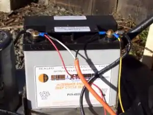 The 3/4 HP Dayton motor is specified to pull 58A with a full load. I used this figure to help determine the size battery I needed. I knew I wanted a 12VDC battery, they are easy to find, use, and come in a variety of sizes. The next step was to figure out the amp-hours I needed to run this particular motor for 45 minutes. Amp-hours are a measurement of the length of time it takes to discharge a battery at a certain amperage. For example; a 35 amp-hour battery should give 35 amps for an hour before being discharged. I know I want to run my mower for 45 minutes but I'll just round it to an hour to be safe. Although the motor is rated for 58A, that amperage is with a full load and typically while mowing I will not be running a full load. While just spinning the blade (not cutting grass) the amps will only be about half of the full load or 30A. So a 40 Amp-hour battery should allow me to mow moderately tall grass for about 45 minutes to an hour. It just so happens that I had a 40 amp-hour deep-cycle battery from a past project. (See below for details on parts and cost).