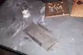 Unfortunately, when removing the old blade from the old mower I was unable to salvage the piece that attached the engine shaft to the mower blade. This meant that it was necessary to fabricate my own blade mount. I found a piece of metal rod about 3/4" in diameter in the scrap pile in the HSU metals lab. I bored a hole into the rod at about 3/8" in diameter (the motor shaft diameter). This would allow the rod to slide over the motor shaft. Next the rod needed a key way milled to allow a key to be inserted. The key connects the rod to the shaft and keeps the rod from slipping while the shaft is rotating. Then I cut the rod to length and welded it to an 1/8" thick metal plate that the mower blade will be bolted to.