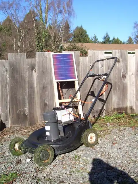 The basic idea is to convert an older non-working gas mower into an electric powered mower by replacing the gas engine with an electric motor that runs from a 12 volt battery. This battery will be charged using photovoltaic panel (A.K.A. - solar panel). I chose to convert an old gas mower rather than just starting with an electric mower due to cost and so I could design the power output. I also planned on using as many used materials as I can. This will help to save these materials from ending up in our already over filled landfills.