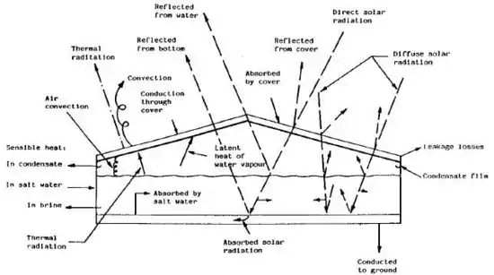 - Greenhouse-solar still. The roof of a greenhouse can be used as the cover of a still.