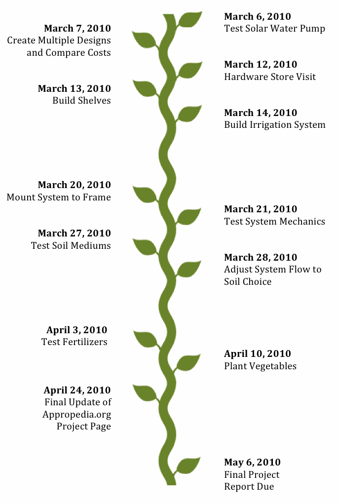 I plan on creating a solar powered vertical vegetable garden. My project will be a version that follows the concept shown in the photo below; where there is a self watering pump that is powered by the sun. I will be creating a low cost and mostly recycled version of the photo below, but also attempt to have a high density crop yield with a solar water pump through a different design. I hope to produce a high density vegetable garden that those on budgets can implement themselves with local resources.