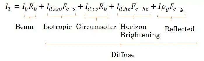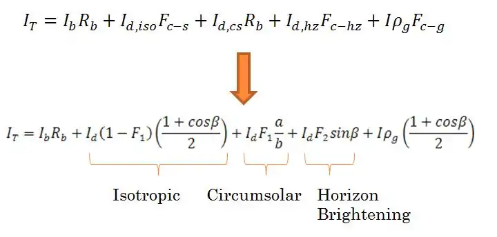 One of the most complex and accurate models for determining total in-plane irradiation, this model uses multiple empirical relations to create a very accurate representation [8] :
