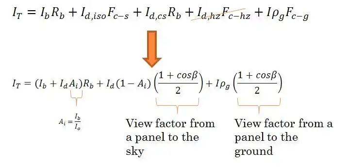 This is the simplest model, and also the most inaccurate. The essential assumption in this model is to assume that all diffuse radiation is isotropic, and the equation can be reduced:
