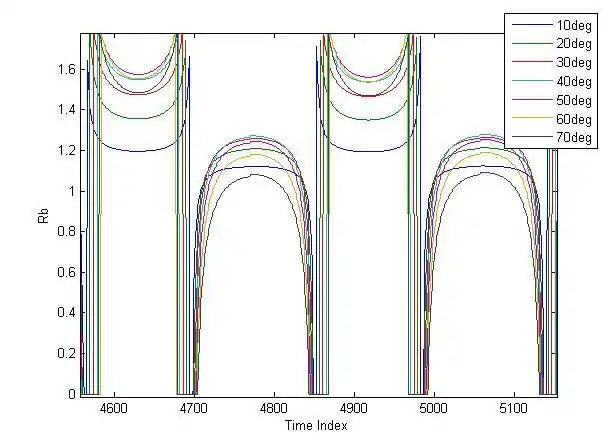As an example, curves of Rb over 2 days for angles of 10 to 70 degrees can be seen below