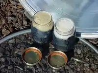 I set stadium light solar cookers facing the sun with equal parts organic brown rice and brown lentil beans in pint mason jars. (1/3 R&B - 2/3 H20). I paint the jars black on one side with Tempera paint. The sunlight is concentrated across the entire lower half of the black side of each jar, but not to a fine point. I try to keep the concentrated sunlight away from the lid. Reflective lid covers made from aluminum foil protect the lids from being overheated by focused sunlight, thus preventing the lid gaskets from melting. The black paint absorbs sunlight well and speeds the initial heating process. Cooking black beans in a separate jar, turns the water black as well; so that the very contents of the jar absorbs sunlightand the jar does not have to be painted black in this case.