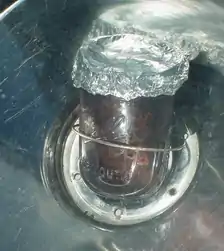 Two piece Mason jar lids are designed to contain boiling liquids while venting excess gas pressure. Mason jars do not explode when used in this way. If they did, they would be banned and ~100 million people would be forced to stop using them for canning. Other types of jars, not made of Pyrex and not having two piece gas venting lids are not recommended for this type of use by this web page. (Non-Pyrex glass tends to crack more easily and one piece lids allow too much gas pressure to build up inside.) The slightly higher air pressure and steam inside hot Mason jars (~5lb/sq in), can pressure cook safely. However, if the outside of the jar is painted black and no water is inside to evenly distribute the heat across its surface, a focused point of light can crack the jar. Pyrex glass expands at a rate which varies proportional to temperature. Different temperatures at 2 adjacent points on the surface of the jar can sometimes cause a crack to form and even split the jar in two. I have never cracked an unpainted jar but always wear gloves and shop-workers' impact resistant safety sun glasses just in case. I also keep the thick glass cover on the stadium light for an extra measure of safety. The glass cover also acts to keep warm air around the jar and that speeds the cooking process. After about 1/2 hour the water in the jar should be bubbling and at this time I carefully pick up the jar with thick gloves and gently tumble its contents to make sure the rice and beans at the bottom cook thoroughly. This serves the same function as stirring. After agitating, place the jar back in position, right side up, at the focus of the stadium light but now with the unpainted side of the jar facing the sun. I use a U shaped length of steel shirt hanger to hold the jar in place. After all the water is absorbed by the rice and beans, occasionally rotate the jar a little to prevent the R&B from browning where sunlight is focused. Keep the sunlight focused across the entire bottom half of the jar (rather then a pin point) during this part of the cooking process to ensure the rice and beans at the bottom are cooked. This also helps keep concentrated sunlight away from the lids. When done, (~ 1hr), wrap the jar in an old wool sock to keep warm and/or to allow the cooking process to continue for a while longer inside the hot jar. As the cooling metal lid contracts and tightens, the jar seals air tight. I think this processes of cooking in mason jars helps keep the food fresh longer as long as the lid remains unopened. However, even if the rice and beans smell fresh when opened after a few days, there is still a chance that they are contaminated with a specific bacteria that causes botulism. Its presence is undetectable by smell, taste, sight or touch. True canning of rice and beans actually requires at least 10-15lbs/sq in of pressure for 1.5 hrs at ~235 degrees F in a pressurized canning container in order to destroy the botulism bacterial spores, possibly present, deep inside of the non acidic beans and rice. The addition of a tablespoon of vinegar to the rice and beans just before canning raises the acidity level to that of fruit used in canning sweet jams. The high acidity level from citric acid in sweet fruit jams destroys botulism causing bacteria and bacterial spores and allows for canning at 212 degrees F without a pressurized canning container.