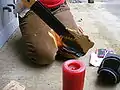 ~1.5 minutes into the flame test for the rice glue with Borax mixed in.