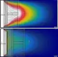 This image is a thermal model run of 400-minutes, 20C outdoor (white), 0C (blue) indoor, adding the insulation board & furring triples the thermal resistance so if you had R15 it's about R45 with the board plus the effect of added thermal-mass.
