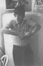 Carl looked amazed when Lois Beard put a handful of semi-firm, hot, brown molasses taffy into his greased hands. "What do I do with it?" he asked.