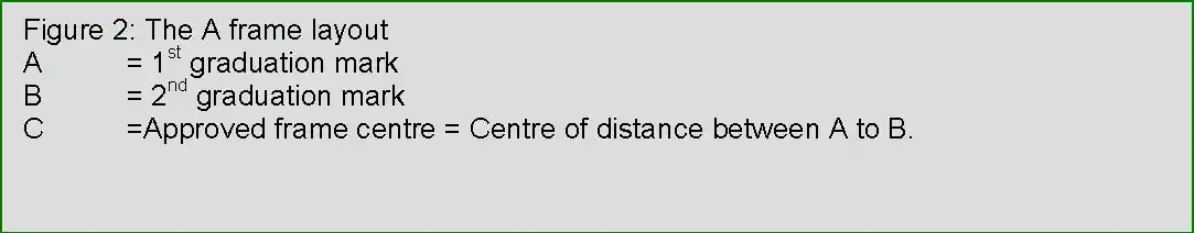 • Place the A Frame striding the peg from which you are starting from, with the bob over the peg and the string at the calibrated frame centre.