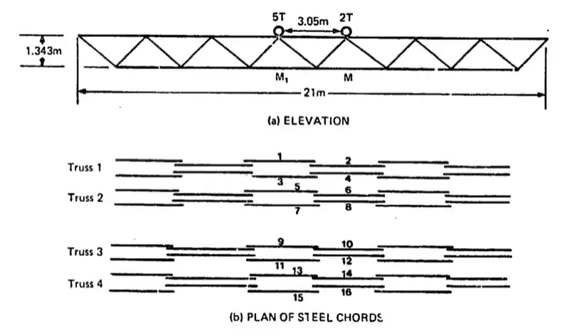 When deciding the strength required of a bridge it is important to know not only the current traffic conditions, but also the likely flows and maximum loads during the projected life of the structure. Although additional trusses may be added after a bridge of this type has been built, this would be considerably more expensive than budding them in initially, when the cost of two more trusses would almost certainly be less than 15 per cent of the total cost of a bridge including abutments.