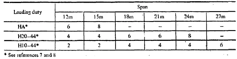 The oldest bridge of this design in existence is that at Nyeri, which is in good condition, but which has not carried more than a handful of commercial vehicles per day and a similar number of light vehicles throughout its life. The available evidence therefore limits the known safe utilisation of this design to very lightly trafficked roads carrying not more than 1000 heavy vehicles per year if a life of 20 years is required, or to somewhat more heavily trafficked roads carrying say 5000 heavy vehicles a year if a life of less than five years is acceptable. The numbers of cars and light commercial vehicles are not likely to have an appreciable affect on the life of this type of bridge.