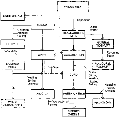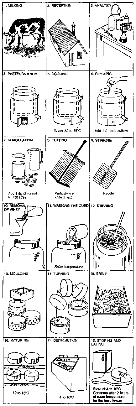 The stages involved in the modern preparation of cheese are illustrated in Figure 3.
