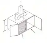 The dryers are made of trays held in a cabinet which is connected to a source of air heated by gas, diesel or bio-mass such as rice husk. The air temperature is usually controlled by a thermostat which is normally set between 50 and 70OC. The air enters the bottom of the chamber below the trays and then rises, through the trays of food being dried, and exits from an opening in the top of the chamber. In the Practical Action systems the trays are designed to force the air to follow a longer zigzag route which increases the air/food contact time and thus improve its efficiency. This system also reduces back pressure which means that cheaper, smaller fans can be used. The airflow in a typical system is shown in Figure 2.