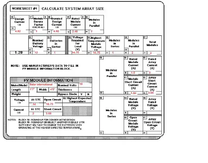 - Test system under full sun and re-test each point and component for common voltage/amperage