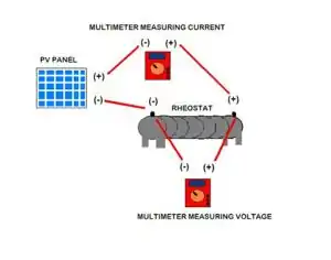 - Testing of panels to determine the current-voltage curve using a rheostat and two millimeters.