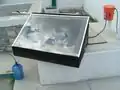 | Untreated water basin | Spray painted galvanized metal | Stainless steel, Ceramic | Spray paint and silicone caulking may contaminate water distillation process | Difficulty obtaining high temperature black sealant. Finding basin of proper size |