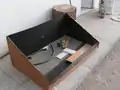 Fig 9: Wooden internal frame that holds water basin. Constructed from thin veneer.