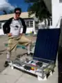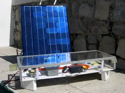 The students and faculty at la Universidad Technológia de Coahuila (UTC) are interested in learning more about photovoltaics. Located in Parras, Coahuila, this technology-oriented university has a three-year relationship with professor Lonny Grafman and Humboldt State University’s appropriate technology program. Lonny provided a PV module, charge controller, battery, and inverter; these components and the desire to learn about PV provided the perfect opportunity to construct a small photovoltaic learning station. The goal of the project was to create a functional, convenient, portable, and instructional learning station and to ensure the involvement and sustained interest of UTC faculty. This station will be used by UTC students, the community and schools of Parras, and by future Humboldt State Parras Program students as a hands-on demonstration of photovoltaics. We aim to make the station attractive and informative to teachers, students, and potential consumers of this viable alternative energy. A concise list of our criteria for success includes: