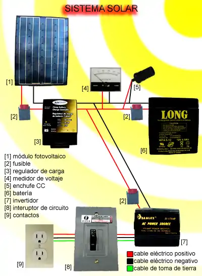 [1] Módulo Fotovoltaico (Panel Solar) - Convierte la energía solar en energía eléctrica.