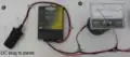 Fig 4: Close-up of the DC outlet to the PV panel, the charge controller, and the voltage meter.