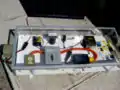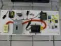 Fig 5: Close-up of the inverter, battery, DC plug and spare fuses.
