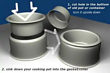 Illustrations on how some people build gaskets/collars to retain heat closest around the cooking pot. This works well over both open fire & modern electric stoves. Do not attempt to use this on a gas stove! Images are meant only as inspiration!