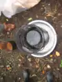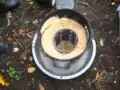 Fig 3b: Fill the space between the cans with hulls. For ease of filling it is best to cover the inner can (for example with another can) whilst filling, so that the hulls don’t fill the inner can.