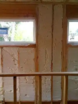It is sprayed into closed walls and places that aren't easy accessible, for example, it works well in existing walls that you don't want to open up completely. A negative quality of this type is that it tends to settle, which leaves some areas uninsulated. [22]