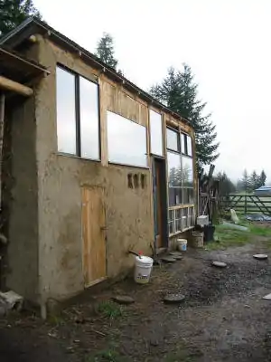 Kiko's vermicomposting toilet is located in a solar barn pictured here: