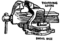 Fig. 5 shows a type of vise where the whole unit may be swivelled in a complete circle and firmly locked in any position by tightening two screws. This is a very useful feature, particularly in a small home workshop.