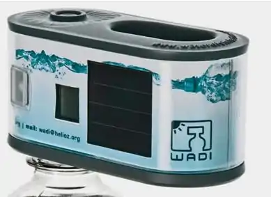WADI is a device that employs solar water disinfection, a simple, ecological, and cost-effective approach to treating water. A transparent PET-bottle is filled with contaminated water and exposed to the sun for some time. A progress bar indicates duration and displays a smiley face when the water has been successfully disinfected.