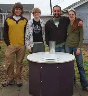 Duchamp de Loo is a prototype toileting system. The frame design, which consists of panels that bolt together and also includes access through a side door and lid, is an innovative design based on; WaterPod's requests for a circular toilet; a desire for easy access for cleaning; and the project design need for shippablity. For a home version this frame could easily be modified to a standard four sided box for easier construction.