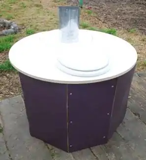 The fecal matter catchment is a composting bin that is located directly under the toilet seat. The composting bin will be filled with fecal matter and the dry additives that will added after every use. The dry additives that will be used will be the ash from the rocket stove, the Chicken Coop Bedding from the Chicken Coops and dry woodchips or sawdust that the barge may create. Once the composting bin is filled with material (which should take about 3 weeks) the composting bin will be removed from under the toilet and a new one will be put in its place. From there the bin will have the top of it installed and will be set in its designated location. The bins will need to sit for about 1 year in order for composting to be finished. Every three days the composting storage bins will need to be stirred with the stir rod and the bin located under the toilet seat will need to be stirred every day. Above, figure 3 shows you what the bins that the compost is stored in look like.