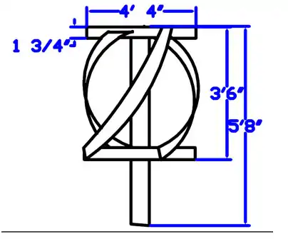 The WindPod Turbine is a vertical axis wind turbine that uses the power of the wind to create energy which is then stored in the 12V battery banks. The WindPod turbine utilizes the vertical axis because while it is not as efficient as a horizontal wind turbine it requires less maintenance and it is able to catch wind coming from any direction without any needed adjustment. The blades are made of steel reinforced fiberglass. Their are three blades 120 degrees part from each other that catch the wind driving a shaft. This shaft then turns a band on the bottom of the turbine which turns the generator creating power. The entire WindPod turbine is about 13 feet tall and uses guyed wires to help support the structure especially in times of high wind.
