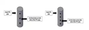 2. Grab the 10inch PVC and drill four/three holes along the sides of the PVC using the 1/2inch spade bit. |
