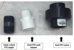 1. Apply Teflon tape to all the threaded 1 inch PVC male adapters.