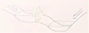 Wind approaching a windbreak is termed the approach flow, it has a direction and a windspeed. As wind encounters a porous windbreak, some of the wind is lifted over it and some of it filters through it.[10] The wind speed is reduced and the energy is partially transferred to kinectic energy of the movement of trees.[11] In a non-permeable windbreak all of the wind is deflected over the top (see: Density). Distinct zones are described in the lee of a windbreak: