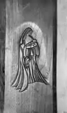 Relief carving-- In relief carving the wood surrounding the pattern is cut away until the figure stands high. The sque and gouge are used to get this effect. Place the gouge on the line of the pattern and cut away from it. The gouge is also used to round the edges of the figures as is the sque.