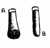 This shows the two types of handles: A. for hand use B. used with the mallet.