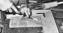 This photo shows how to use the whet stone to sharpen the chisels.