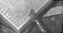 Chip carving-- In chip carving the pattern is based on the square and triangle. The design is embedded in the wood, deeper than the original surface. The special wood carving knife, shaped at an angle is used in chip carving. To use the knife, place the point where you want the cut to be deeper, and then rock the knife back and forth to make the cut the length you want.