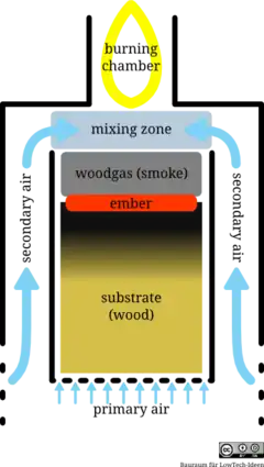 Schematics of the working principle of gasification stoves