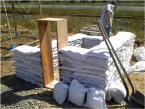 The Rubble Trench Foundation that was tested by team Rubblution in cooperation with team Humangineers. Team Humangineers project used dirt as a resource to build relief structures out of soil-filled bags, and was called WorldShelters Bags of Shelter. These bags were placed directly on top of the trench and provided direct weight on top of the Rubble Trench Foundation. The trench was built to a half scale model for an 8’ x 6’ structure.
