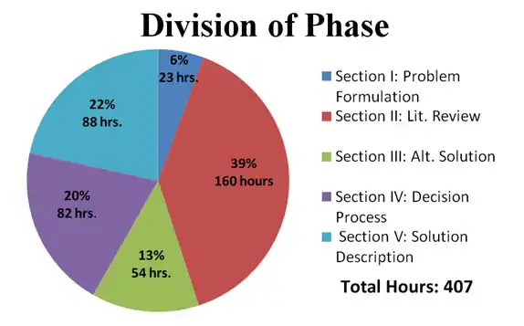 Design costs in hours are shown in the following figure, which is an estimated value of the work done. These estimated values are dated as of April 28, 2010, the total cost in working hours for the design project is 407 hours. The percentages shown on the pie chart are the amount of hours that were put into this project.