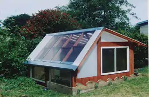 Our Plan: To build a straw bale greenhouse where Kiva can grow chili peppers, tomatoes, and lots of other yummy warm weather plants. The reason we decided to build with straw bale was to gain experience with this material and the great insulative value of it. Scott and I decided to have two of the walls straw bale and the other two wood and glass. Where we live no permits are required for a 10' x 12' greenhouse, so we decided these would be the inside dimensions. To receive optimal year-round sun in our area the glass on the south facing wall is at a 40 degree angle. At the building site there is plenty of morning sun and not much evening sun so we opted to have our east side be glass and our west side be straw bale.