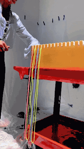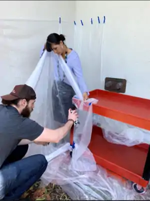 In the final construction of the P.E. Equipment cart we initially painted the cart with Sherwin Williams all surface enamel paint; however, when dried this paint peeled very easily. We realized that we could not use this paint because it would not last, instead we used Kraylon Fusion spray paint meant for plastic surfaces which worked excellently.